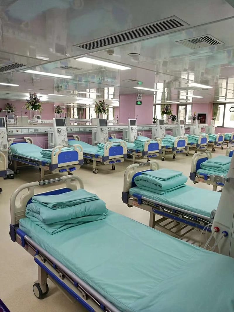 血液透析室于2002年开诊,2018年初正式启用新院区血液透析室,总占地面积1680平米,配套设施齐全,且严格按照疾控中心要求设计。均匹配高素质具有丰富血液净化治疗经验的医护人员,为病人提供优质的医疗服务。现拥有血液透析机80台,CRRT机2台,Lauer双膜双反渗水处理机1台。现已开展血液透析、血液滤过、单纯超滤、血液灌流、双腔在线血液透析滤过PHF、HFR、血浆置换、DNA免疫吸附、连续性肾脏替代治疗(CRRT)等现代诊疗项目。并为乙肝、丙肝、梅毒的特殊尿毒症患者提供安全隔离透析治疗环境。