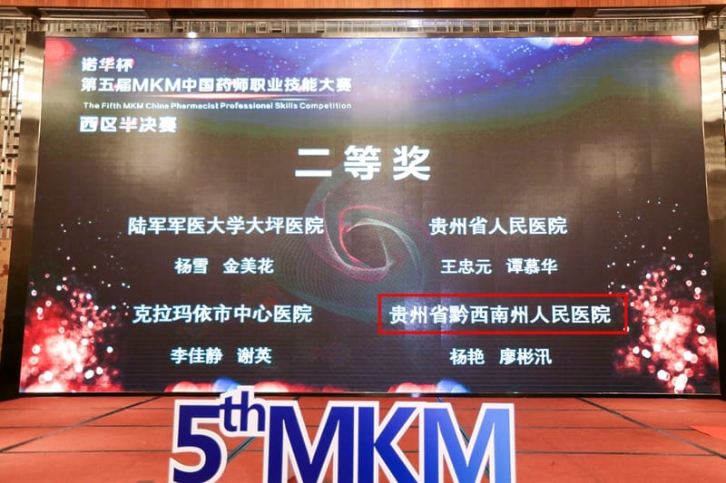 经过第一轮线上竞赛角逐,第二轮贵州省赛区的激烈PK战,黔西南州人民医院杨艳、廖彬汛两名药师以名列贵州省第三的优异成绩挺进“诺华杯”西部赛区半决赛。4月13日,“诺华杯”第五届MKM中国药师职业技能大赛西区半决赛在成都举办,半决赛由西区11个省33支代表队伍进行角逐,我院药师代表经过紧张激烈的笔试和现场作答(处方审核、用药教育、风险评估)两个环节,以丰富的药学知识和出色的临场发挥再创佳绩,荣获西区半决赛第六名——“二等奖”,这是继我院药师代表荣获贵州省晋级赛二等奖后获得的最高殊荣。