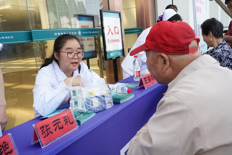 药学部主任副主任张元礼为前来咨询的群众答疑解惑