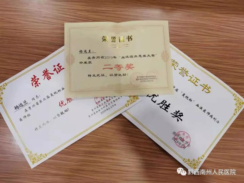 血液内科虽然成立时间短,但每周坚持为规培医师、实习生、进修生进行教学查房、技能培训、疑难病例讨论;现承担黔西南州科技局基础研究项目2项,引进新技术、新项目并转化为成熟项目10余项;我科医务人员参加贵州省血液内科病例演讲比赛及临床思维大赛多次获奖。作为一个年轻的团队,在成长的过程中我们会遇到种种困难及坎坷,在未来一年预计申报科研项目1-2项,引进新技术、新项目3-5项,开展血细胞分离治疗,为2-3年内开展自体移植做好准备。