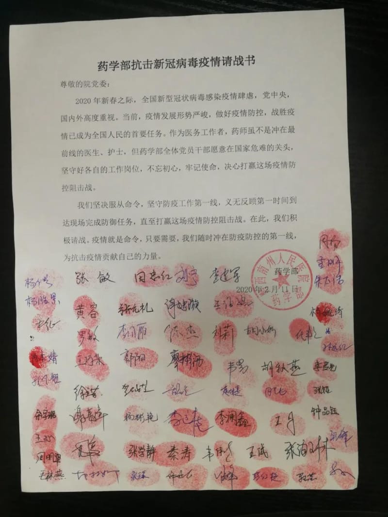 总之,在这一场看不见硝烟的战争, 药学部同志恪尽职守,牢记使命,不忘初心,不畏艰难,携手前进,以高度的责任感和使命感为打赢这场新型冠状病毒感染的肺炎战役,尽显浓浓药师情。