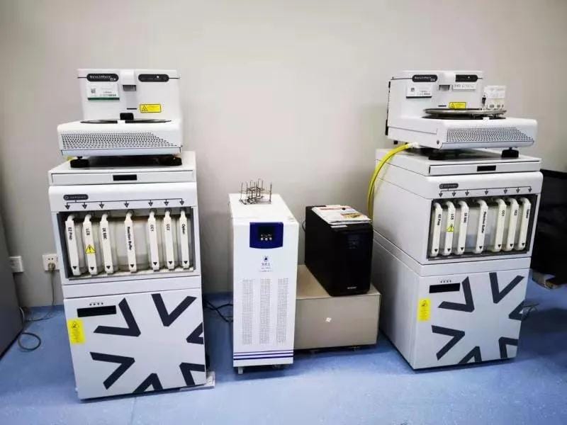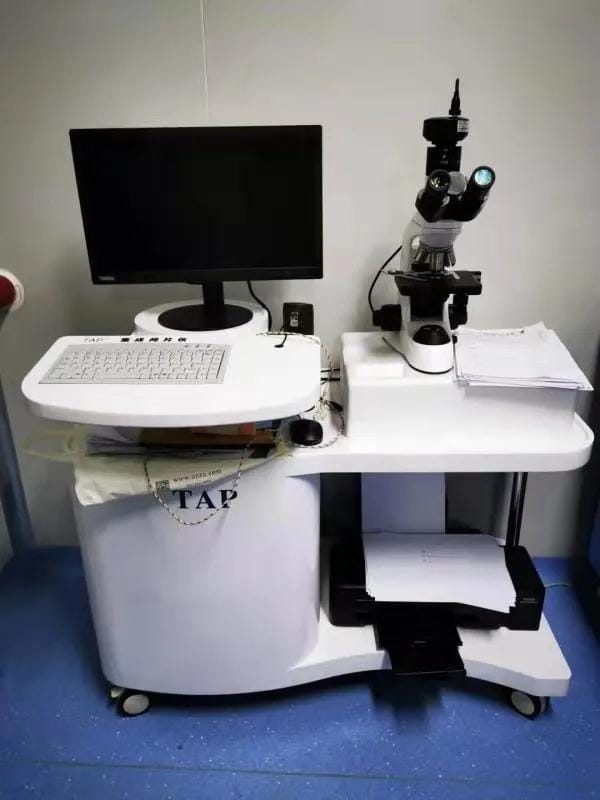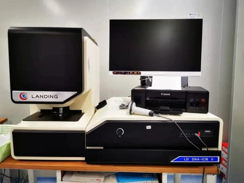 病理科设备配制齐全、先进,配备免疫组织化学自动染色仪、全自动组织脱水机、快速冰冻切片机、半自动包埋机、石蜡切片机、膜式细胞制片机、病理图文分析系统、全自动细胞病理分析仪、异常糖链糖蛋白集成阅片仪、显微镜(日本OLYMPUS BX51显微镜一台,OLYMPUS BX41显微镜三台,OLYMPUS BX43显微镜三台,十人共览显微镜),保证病理技术制片的质量,提高可靠性与稳定性。