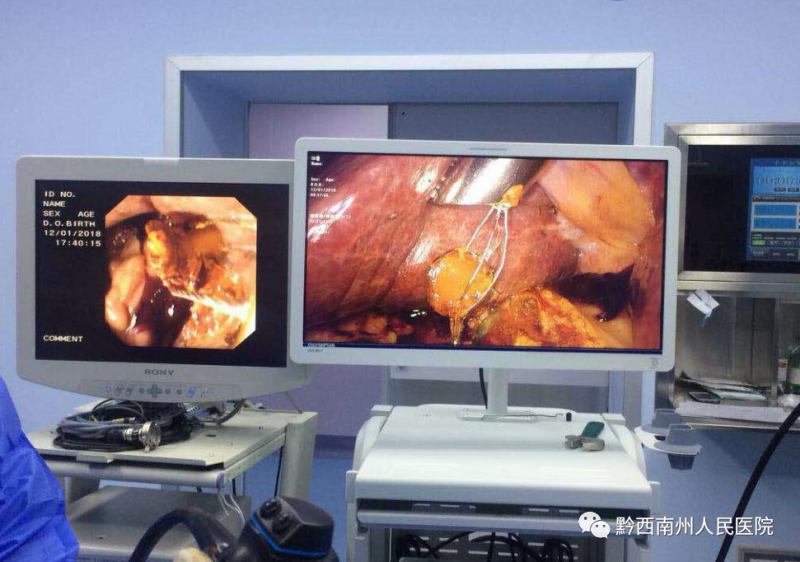 3、腹腔镜、胆道镜双镜联合治疗胆总管结石