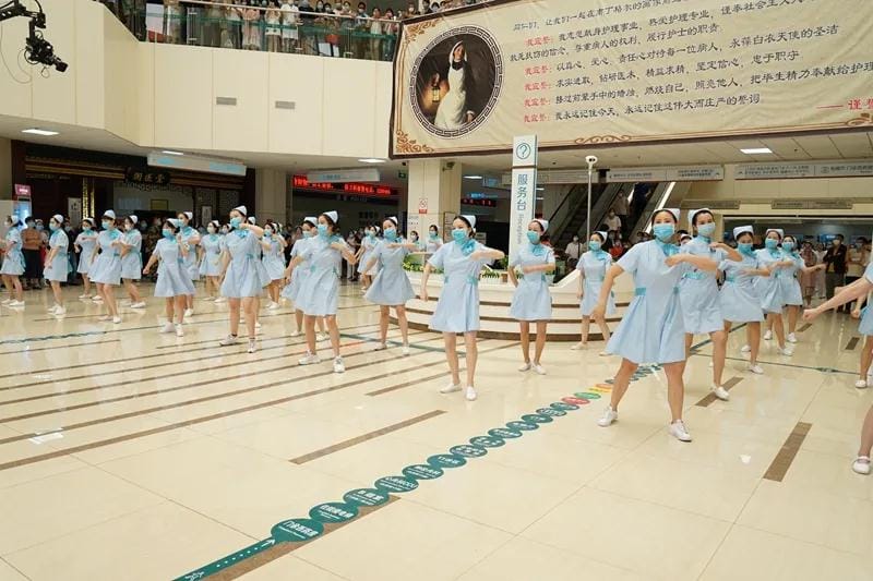 众多素不相识的患者和家属纷纷跟着歌声聚集在一起,有人拿出手机拍照、录像,有人跟着节奏拍起了手掌,还有人向他们伸出了大拇指,为这群可爱的护士们点赞。驻足观看表演的一位病人说,“看到这群朝气蓬勃、快乐可爱的年轻护士们,带给我们温暖和战胜病痛的信心。”