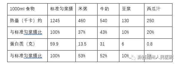 注:表格中标准匀浆膳即为医院营养科配制的营养液的一种,可管饲,也可口服,味道还不错哟!