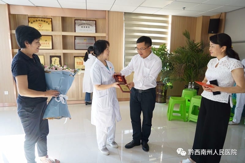 9月28日,州委常委、州委组织部部长顾先林、副州长黄曼、王丽琼一行,来到州人民医院慰问全国先进工作者获得者副院长白宁艳,向她致以诚挚问候和崇高敬意,将“庆祝中华人民共和国成立70周年”纪念章和慰问金、鲜花送到她的手中。