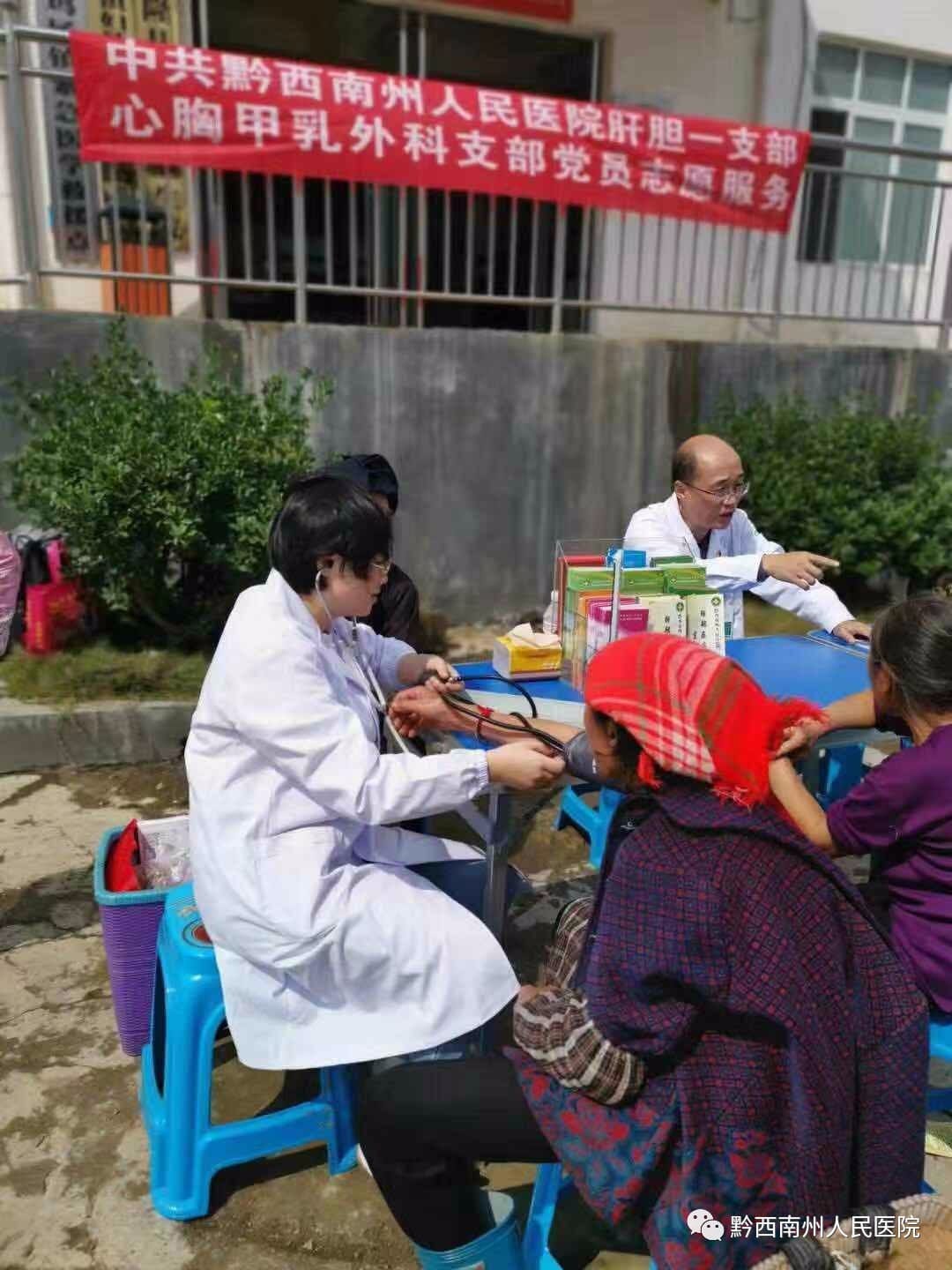 为推进“不忘初心 牢记使命”主题教育工作,坚持以人民群众为中心的发展思想,以预防疾病、解除疾病和促进健康为目的,志愿为人民群众提供健康咨询,全心全意为人民群众服务,着力解决人民群众最关心最现实的健康问题。近日,州人民医院肝胆外科一病区、心胸甲乳外科党支部组织党员志愿者,来到晴隆县鸡场镇卫生院开展党员志愿服务义诊活动。