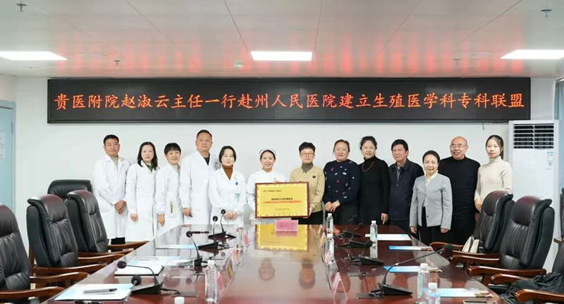 在与会人员的共同见证下,吕鹏副院长与赵淑云主任分别代表双方签署专科联盟协议。随后,赵淑云主任向黔西南州人民医院授牌“贵州医科大学附属医院生殖医学科专科联盟成员单位”,慕容红梅主任代表医院接牌。