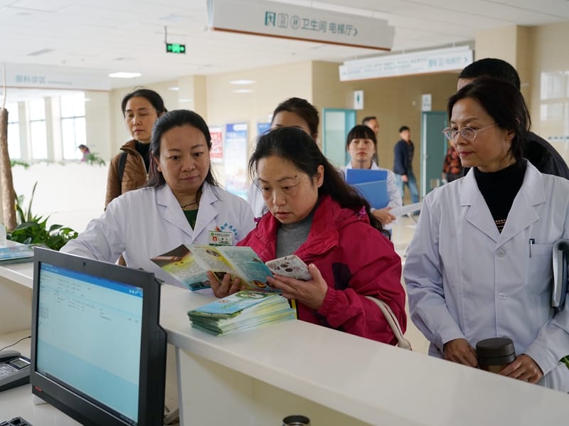 查阅资料 汇报会上,工会主席代时莉首先对远道而来的韦燕专家一行表示欢迎,并希望专家们不吝赐教,助力我院戒烟门诊工作开展。随后,呼吸与危重症医学科医务人员从戒烟门诊的组织架构、环境建设、过程建设、疗效评估、发展指标以及发展思路等方面作了汇报。听取汇报后,专家们依照评估问卷,仔细地查阅相关资料,实地走访戒烟门诊开展情况,一一进行评分。
