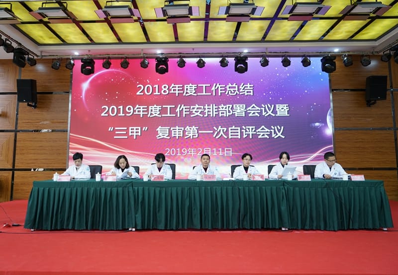 2019年2月11日,黔西南州人民医院在行政楼多功能厅召开2018年度工作总结,2019年度工作安排部署会议暨“三甲”复审第一次自评会议,院领导张传跃、代时莉、黄玉梅、白宁艳、景秋、李文茂、王楠以及全院中层干部、各科室“三甲”联络员近300人参加会议。