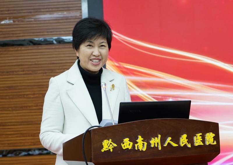 黔西南州人民政府副州长王丽琼向专家们表示感谢,并希望专家们多提宝贵意见 2月25日上午,医院全面质量管理与持续改进辅导启动会在医院多功能厅举行。辅导专家组,黔西南州人民政府副州长王丽琼、州卫生健康局局长梁龙甫以及医院全体院领导、科室负责人等200余人参加了会议。